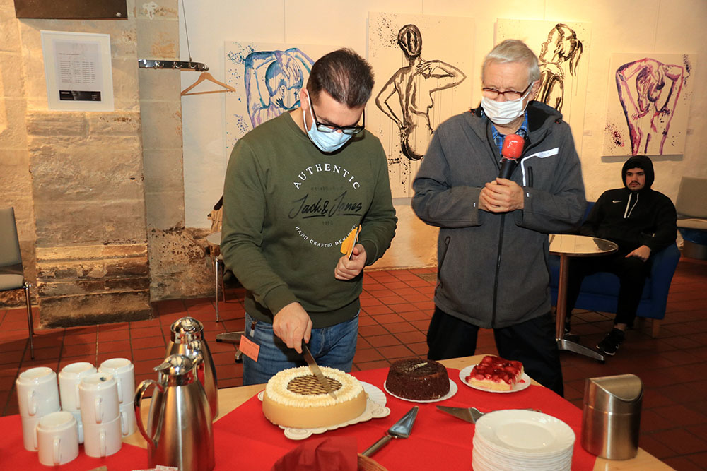 Es gab viel Applaus und die Genannten durften die Kuchen und Torten anschneiden und mit viel Spaß möglichst gleichgroße Stücke für das Publikum schneiden.