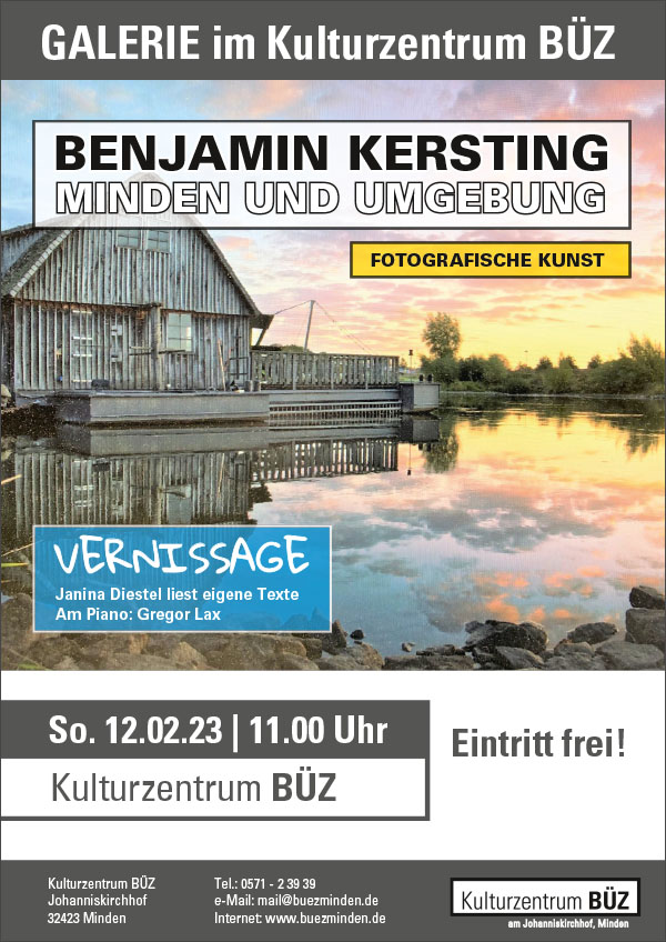 In früheren Jahren war Benjamin Kersting den Mindenern als Musiker und Gitarrenlehrer bekannt. Allerdings machte er bereits durch Fotoausstellungen auf sich aufmerksam. Sein Großvater war der bekannte ostwestfälische Künstler Benno Kersting. Dieser wirkte auch als Kunstlehrer in Petershagen und inspirierte Schülerinnen und Schüler zur Malerei und dem Interesse an der Kunstgeschichte. Er malte überwiegend Landschaftsgemälde in Öl. In einer kurzen Laudatio stellte Dieter Nitsch, ein ehemaliger Schüler des Großvaters von Benjamin Kersting, den Zusammenhang von Landschaftsgemälden und der Landschaftsfotografie her.