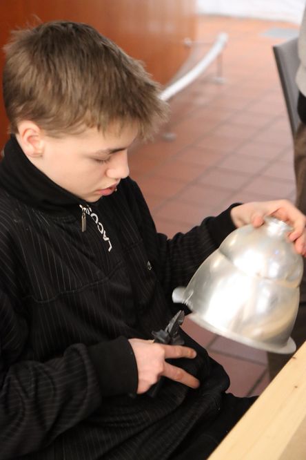 Manuela Johne-Sander als künstlerische Initiatorin und Fachfrau achtete mit aufmerksamem Blick auf die zur Verfügung gestellten Werkzeuge und Grundmaterialien sowie die entstehenden Objekte, gab den jungen Teilnehmenden Tipps zu Arbeitsablauf und Gestaltung, was die wiederum voller Interesse aufnahmen und in ihre eigenständigen Interpretationsleistungen übersetzten.