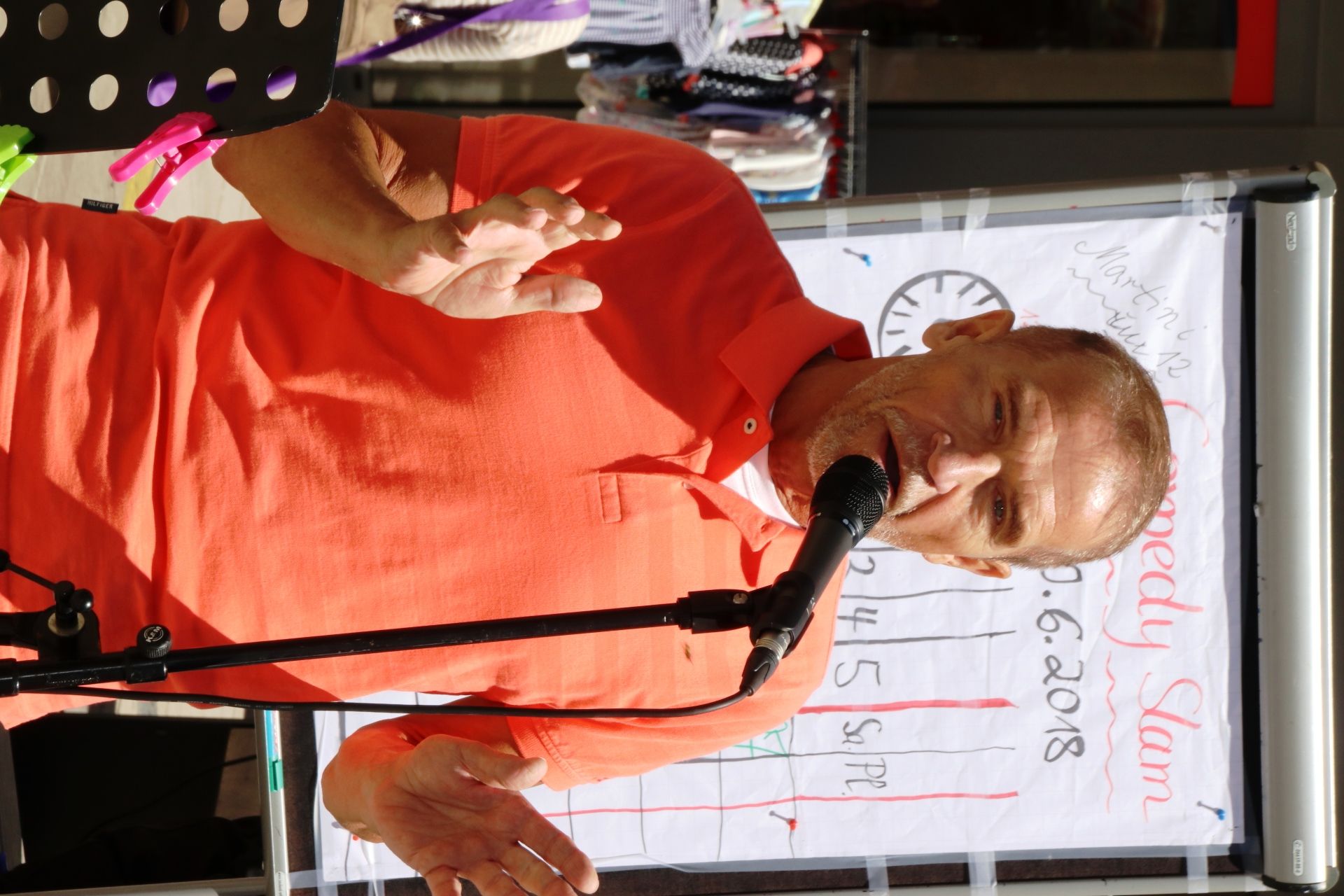 „Der Tod ist die stärkste Form der Dienstunfähigkeit“, zitiert Martin Janke aus Minden. Er, der sich mit Gesetzmäßigkeiten auskennt, zeigt Unsinniges aus Beschlüssen von Behördenschreiben. Auch hier logischerweise wieder viele Lacher. Ganz viele von diesen Lachern erfährt der zweifachen deutsche Meister Philipp Scharrenberg. Philipp geht auf eine Fabelreise, und sein Spiel mit den Worten zwischen frivol und normal macht hier die Spannung aus. Ganz hohe Punktzahl für ihn.