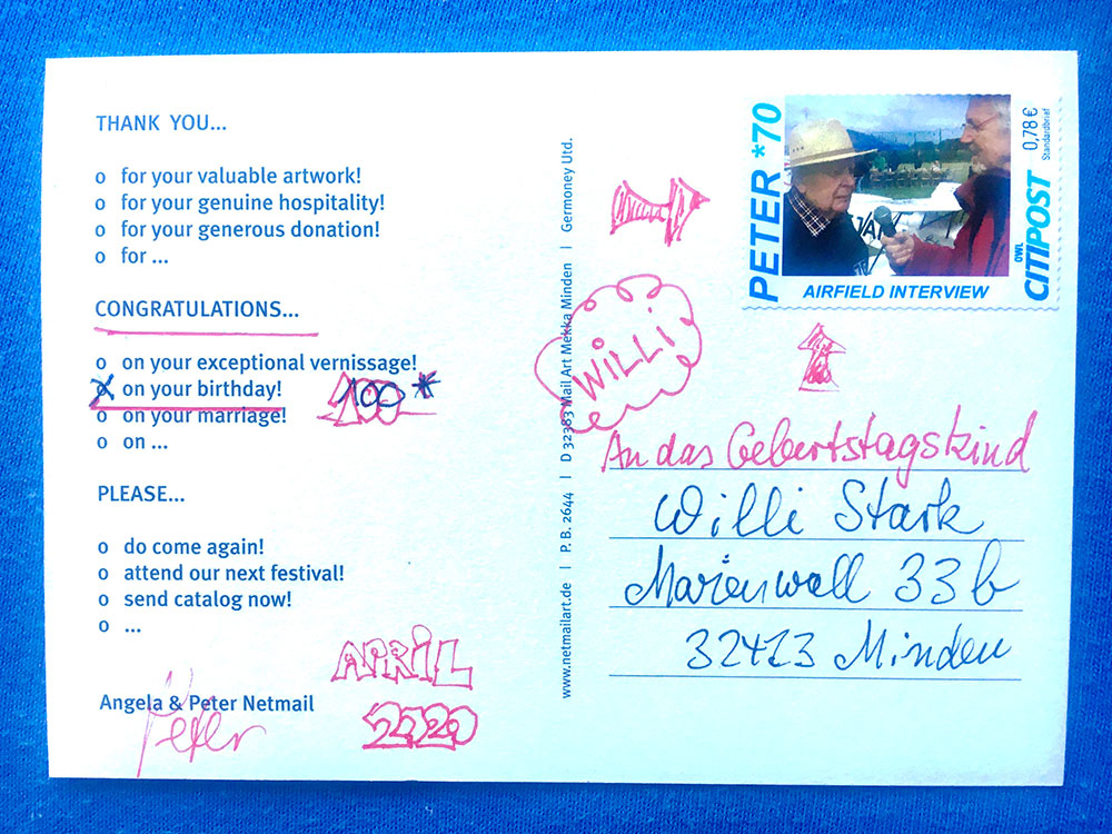 Zu seinem 100. Geburtstag schickten die Teilnehmer von Grandpa & Me ihm nun einen selbstgestalteten Mailart-Geburtstagsgruß.
