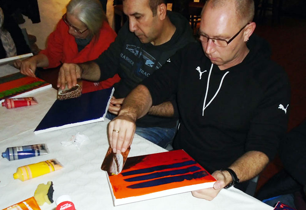 Mit JacMat/Dänemark in seiner Ausstellung „Body Art“ - Workshop „Spachteln statt Pinseln“